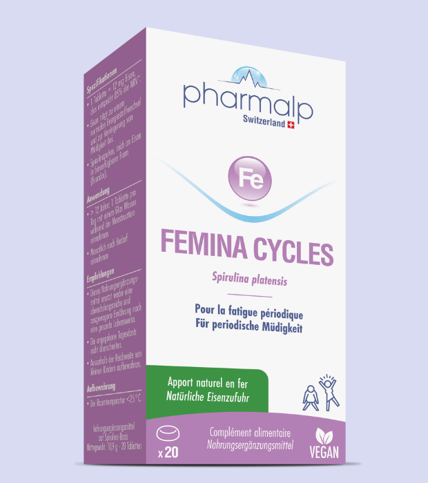 FEMINA CYCLES est à utiliser au besoin en fonction de la fatigue. Il n’est pas nécessaire de le prendre à chaque cycle. Néanmoins si vous avez déjà expérimentée des carences en Fer dans le passé, vous pourriez prendre FEMINA CYCLES pendant les règles tous les mois dans une approche préventive et afin d’assurer un apport en Fer à chaque perte.